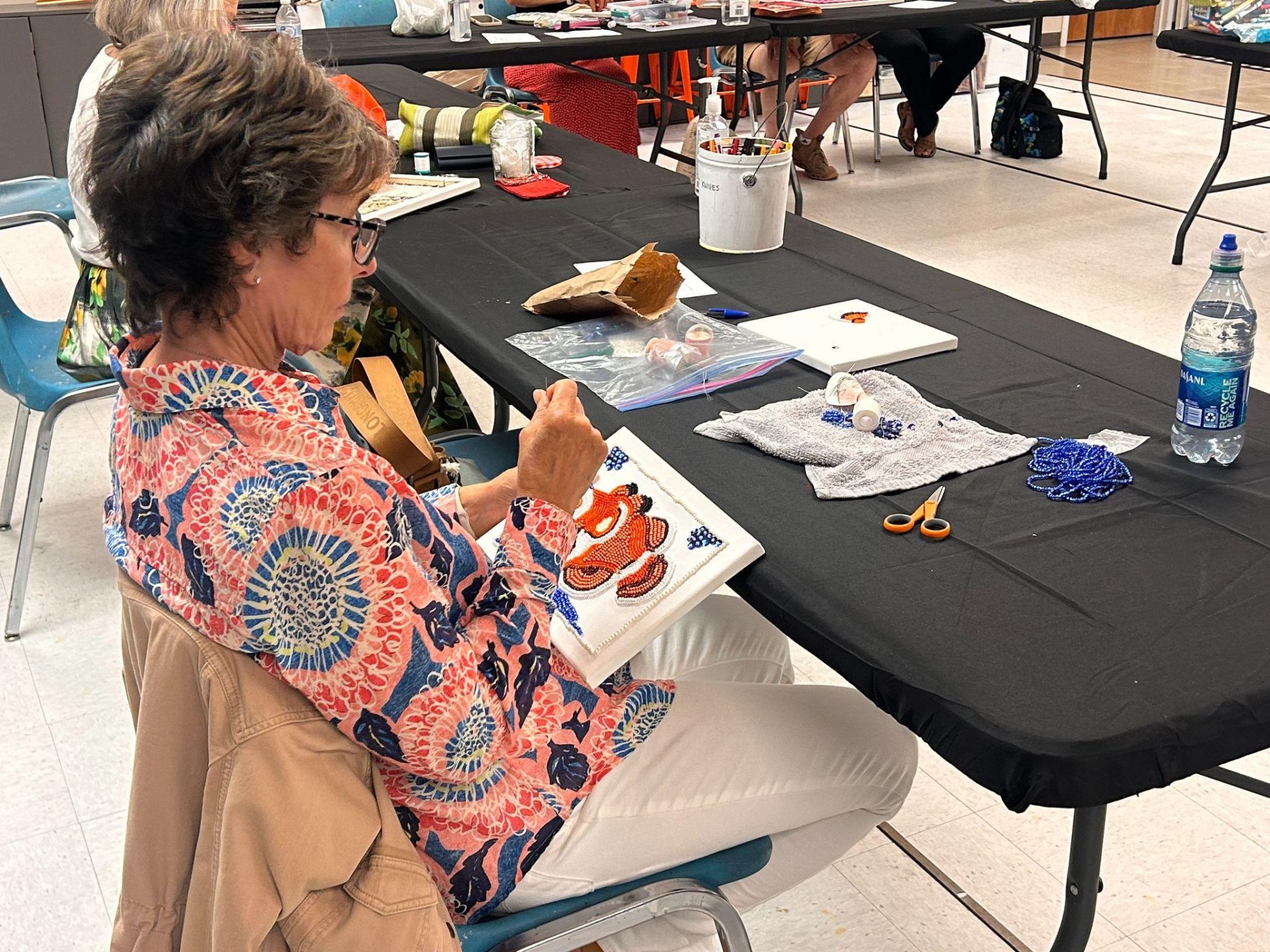 Along with the opening of NOMA’s New African Masquerades: Artistic Innovations and Collaborations exhibition, the Art Thrives program had a six-week long beading workshop led by former Creative Assembly member and New Orleans Culture bearer, Dianne Honoré. During the four weeks of this workshop, Art Thrives participants learned how to bead, practiced beading techniques, and created amazing beadworks. Participants of varying levels were excited to share their experiences, tips, and tricks of beading with each other.