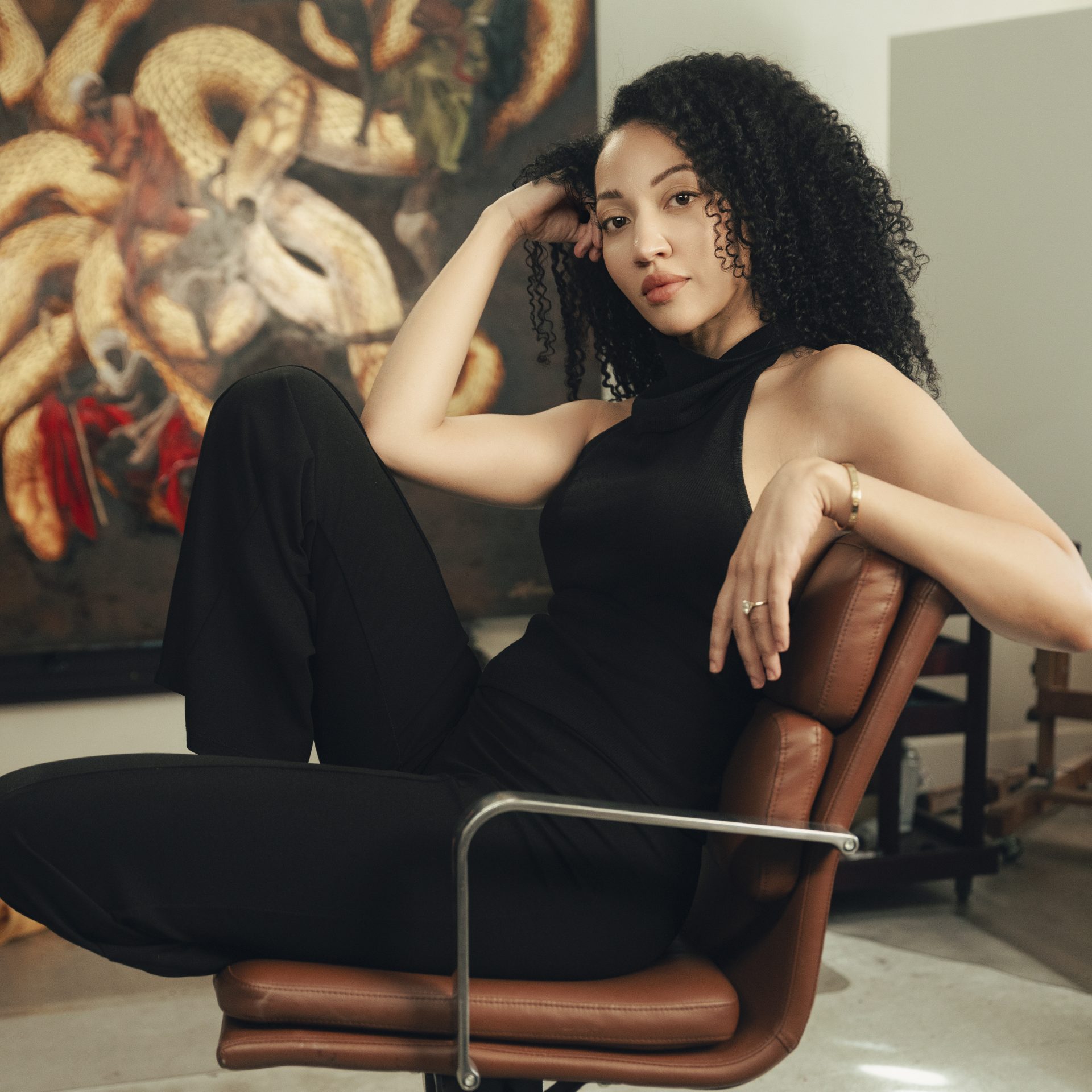 Harmonia Rosales is a Chicago-born, Afro-Cuban American artist and author whose work centers the visibility and empowerment of Black women in Western art. Growing up visiting the Art Institute of Chicago, Rosales was captivated by Renaissance painting – but years later, her daughter’s simple observation that “they don’t look like me” exposed the exclusion at the heart of that tradition. That moment sparked Rosales’s artistic journey: reimagining Renaissance and Baroque masterpieces with Black protagonists and centering West African tradition.