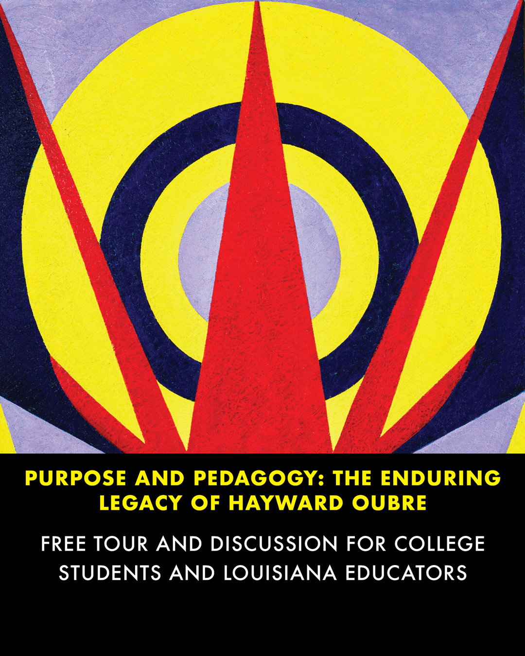 At “Purpose and Pedagogy: The Enduring Legacy of Hayward Oubre,” guests will learn about the artist Hayward Oubre’s impact as both a working artist and arts educator. Through a guided tour of the exhibition and a post-tour discussion with NOMA’s Chief Curator and the curator of the exhibition at NOMA, Anne Collins Smith, moderated by two students of Dillard University, guests will explore how Oubre’s legacy as a working artist and arts educator have impacted their experience in art classrooms.