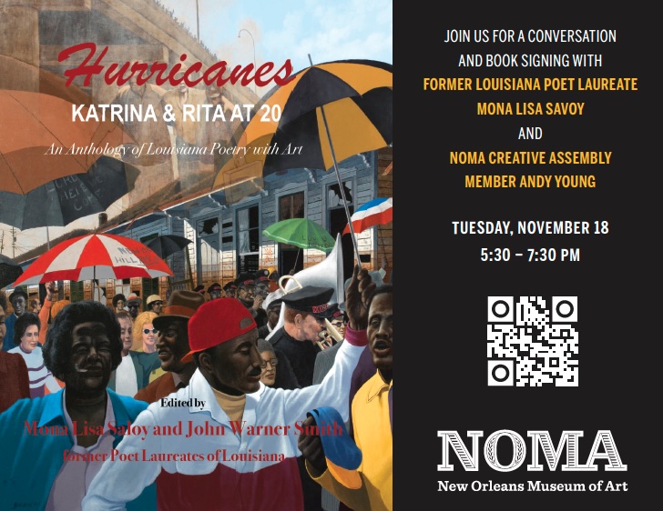 NOMA’s Lapis Center for the ArtsJoin NOMA Creative Assembly member Andy Young and 2021-2023 Louisiana Poet Laureate Mona Lisa Saloy for a conversation in connection with the new anthology "Hurricanes Katrina and Rita: An Anthology of Louisiana Poetry with Art."