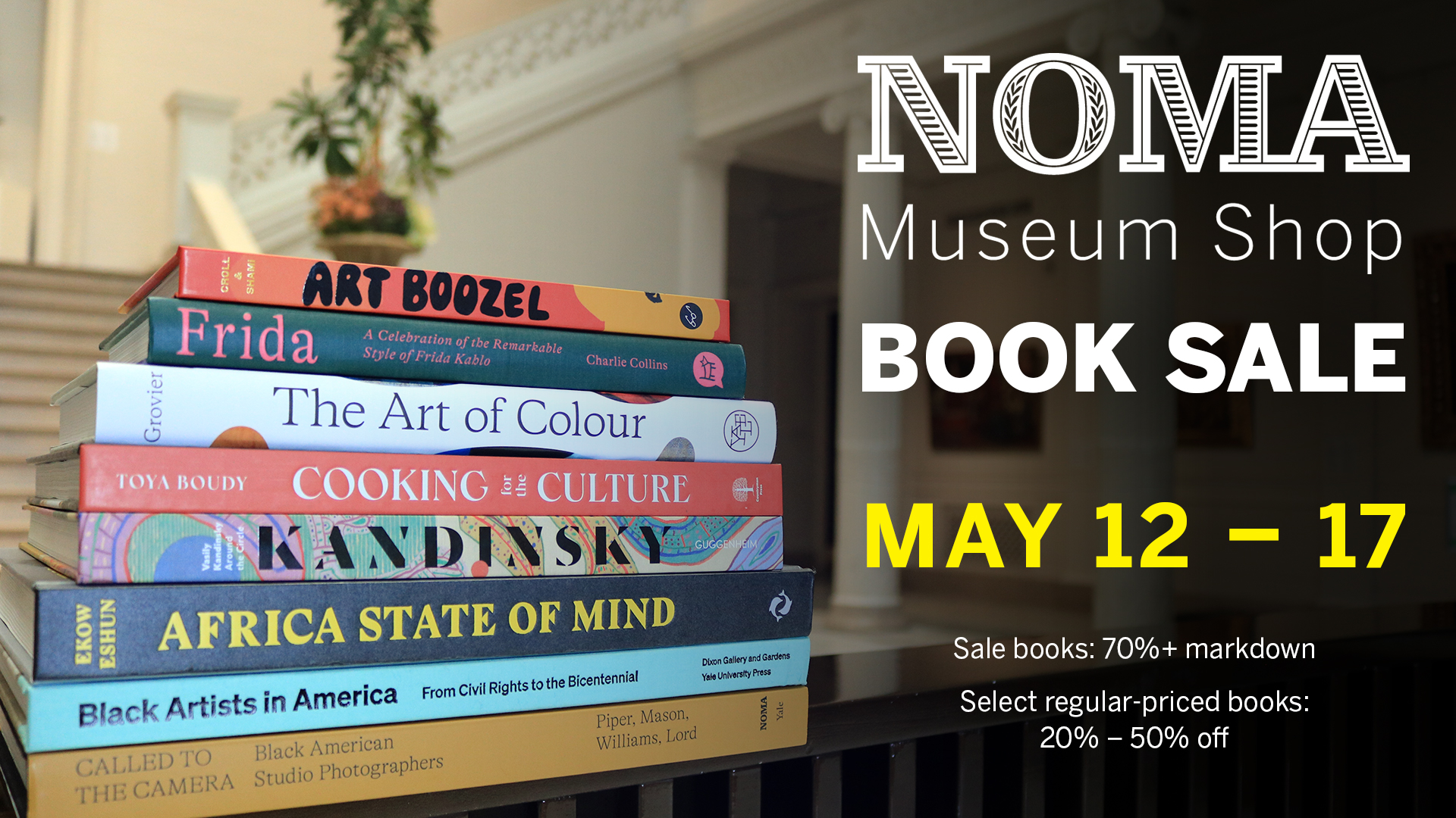 NOMA Museum ShopAccess select regular-priced books at 20-50% off and sale books at 70%+ markdowns during the NOMA Museum Shop Book Sale.