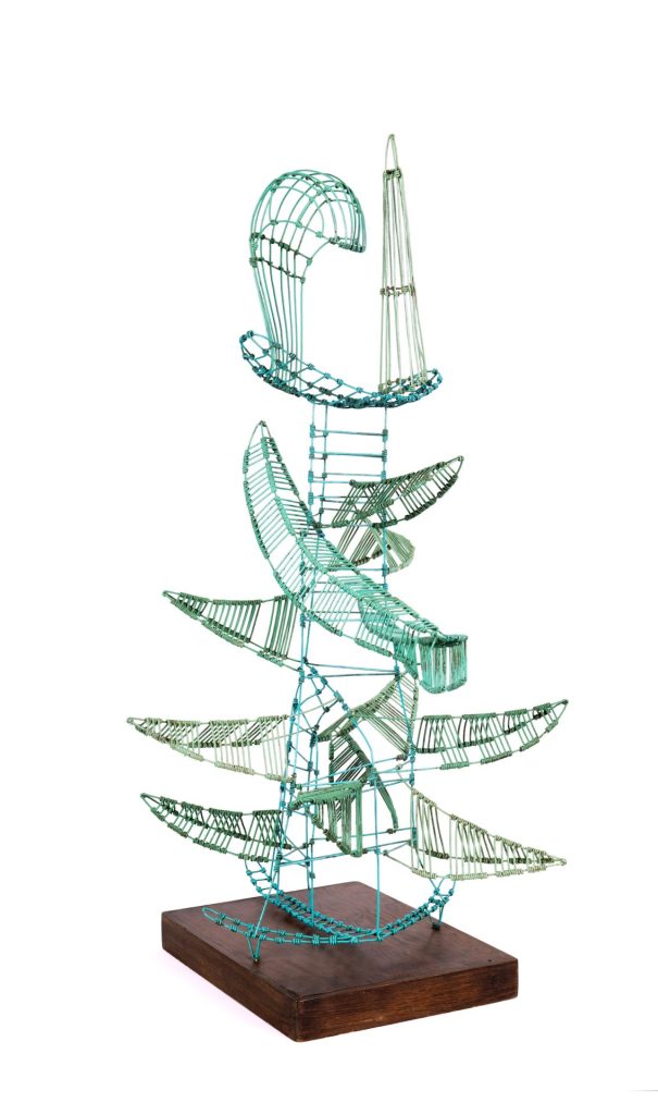 Painted metal wire on wood base